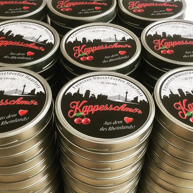 YEEEEEEEEEEEEES!!!!!!!! DONE! Kappesschmör Kehsch! The 2nd hairpomade from Düsseldorf with a awesome spicy cherry smell with a bit of wood. #cutcorner #thebarbershop #kappesschmoer #kehsch #kirsche #pomade #pomadeshop #duesseldorf #duesseldorf_de #visitduesseldorf #bilk #hairstyling #friseurdüsseldorf #hair #style