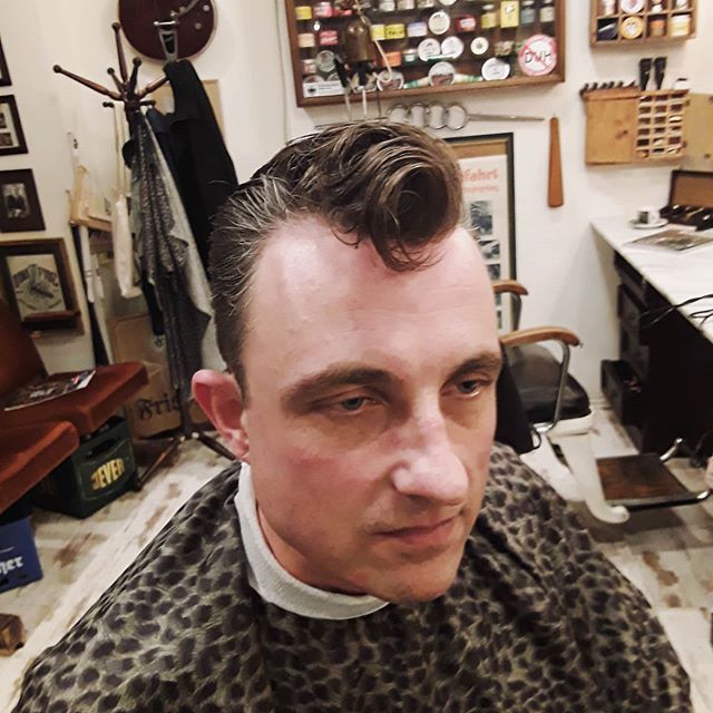 Classic Elefant Trunk! #cutcorner #thebarbershop #elephanttrunk #elefanttrunk ##pompadour #vintage #heritage #1950s #1940s #rocknroll #rockabilly #quiff #barber #friseurmeister #traditionalbarber #duesseldorf_de #düsseldorf #visitduesseldorf #karolingerstraße