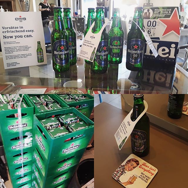 Beer for all….. we hav now enought! Thx to #heineken #jamesbond #007 promo cooperation. #cutcorner #thebarbershop #color #flattop #heinekenexperience #beer #freebeer #beerforall #zerozero #noalcohol #noshame #nowyoucan #redstar #beertasting #promotion #biervorvier #duesseldorf @heineken_de #rocknrollfriseur #rocknroll
